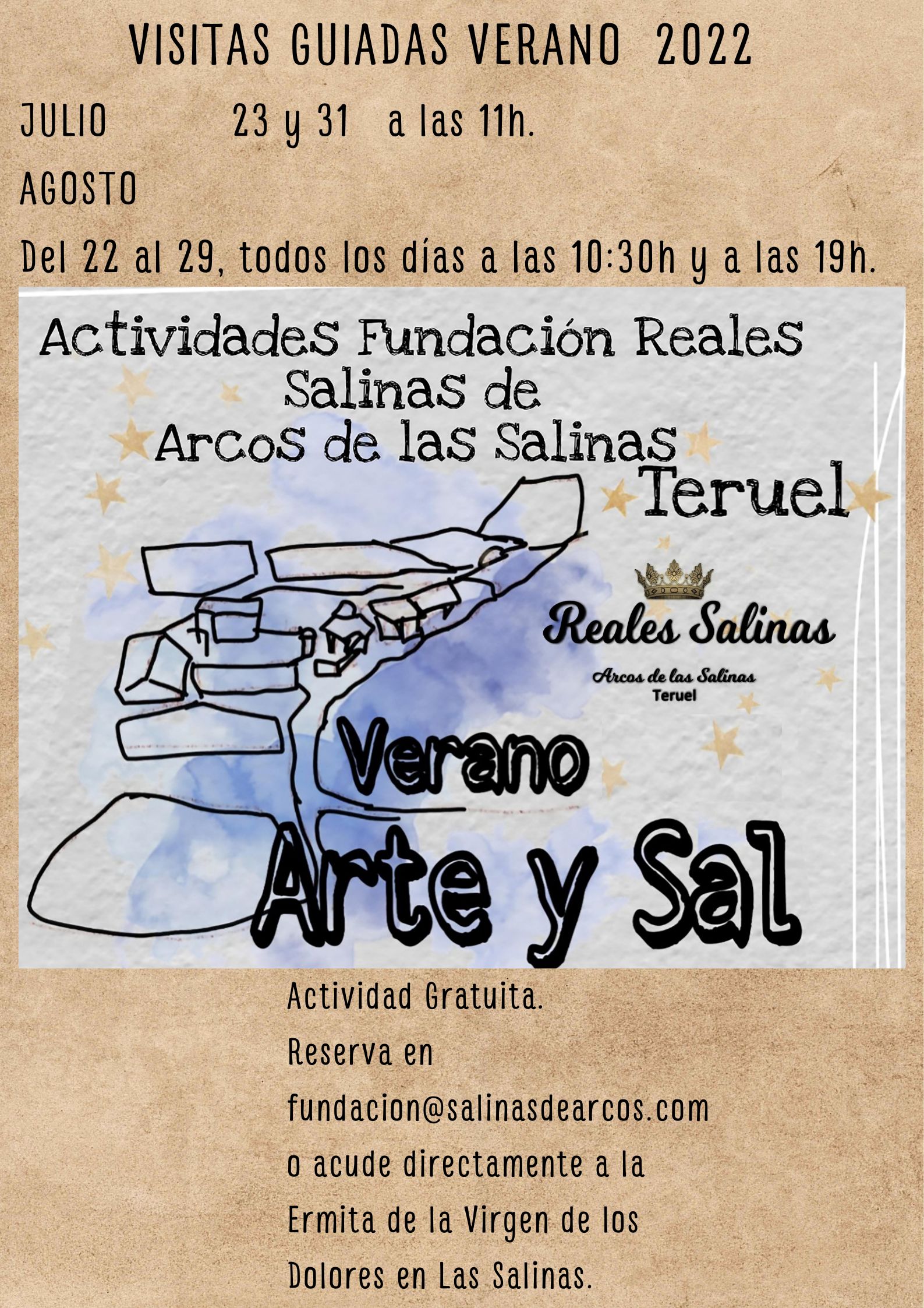 La Fundación Reales Salinas de Arcos de las Salinas está ofreciendo durante todo el verano actividades para dar a conocer las salinas de Arcos de las Salinas en la comarca de Gúdar Javalambre de Teruel. Las actividades empezaron el pasado 12 de junio con una semana de puertas abiertas que se hizo para dar a conocer estas salinas consideradas unas de las más importantes de la Corona de Aragón durante el reinado de Jaime I, hay constancia documental que el monarca las visitó el 30 de septiembre de 1259. Las próximas visitas serán el 23 y 31 de julio a las 11h.